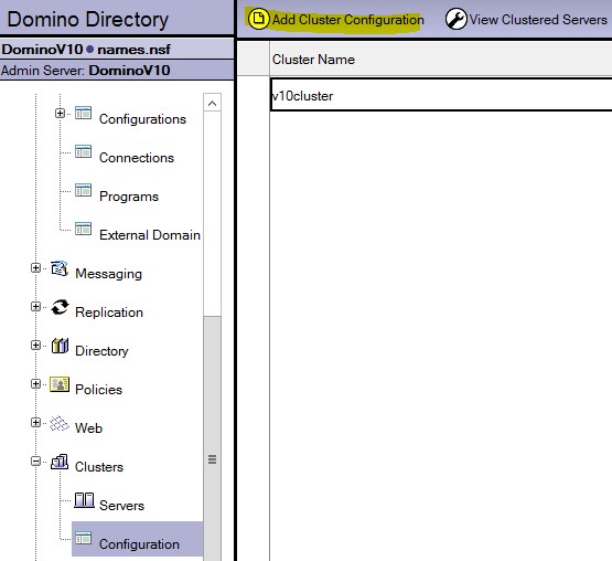 Meine Testumgebung war sehr schnell zu einem Cluster konfiguriert, da sich im Vergleich zu Domino 9.0.1 nicht viel an der Konfiguration ändert.