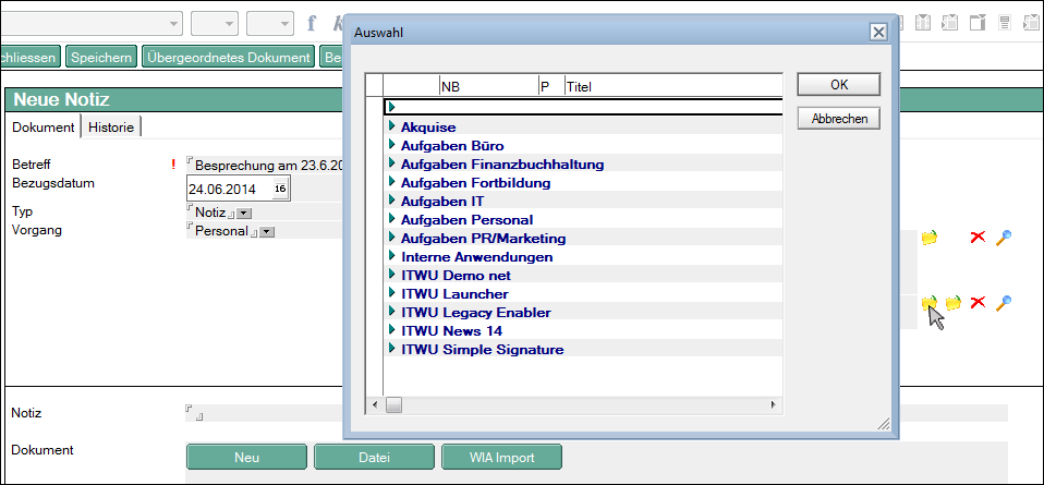 Abb. 2: Das Aufrufen der hier dargestellten Auswahl mit Hilfe der Funktion "NotesUIDocument.PicklistCollection" wäre im Notes Brower Plug-in momentan nicht möglich.