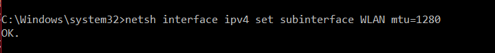 netsh interface ipv4 set subinterface WLAN mtu=1280